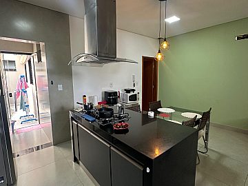 Cozinha com balcão armários planejados /