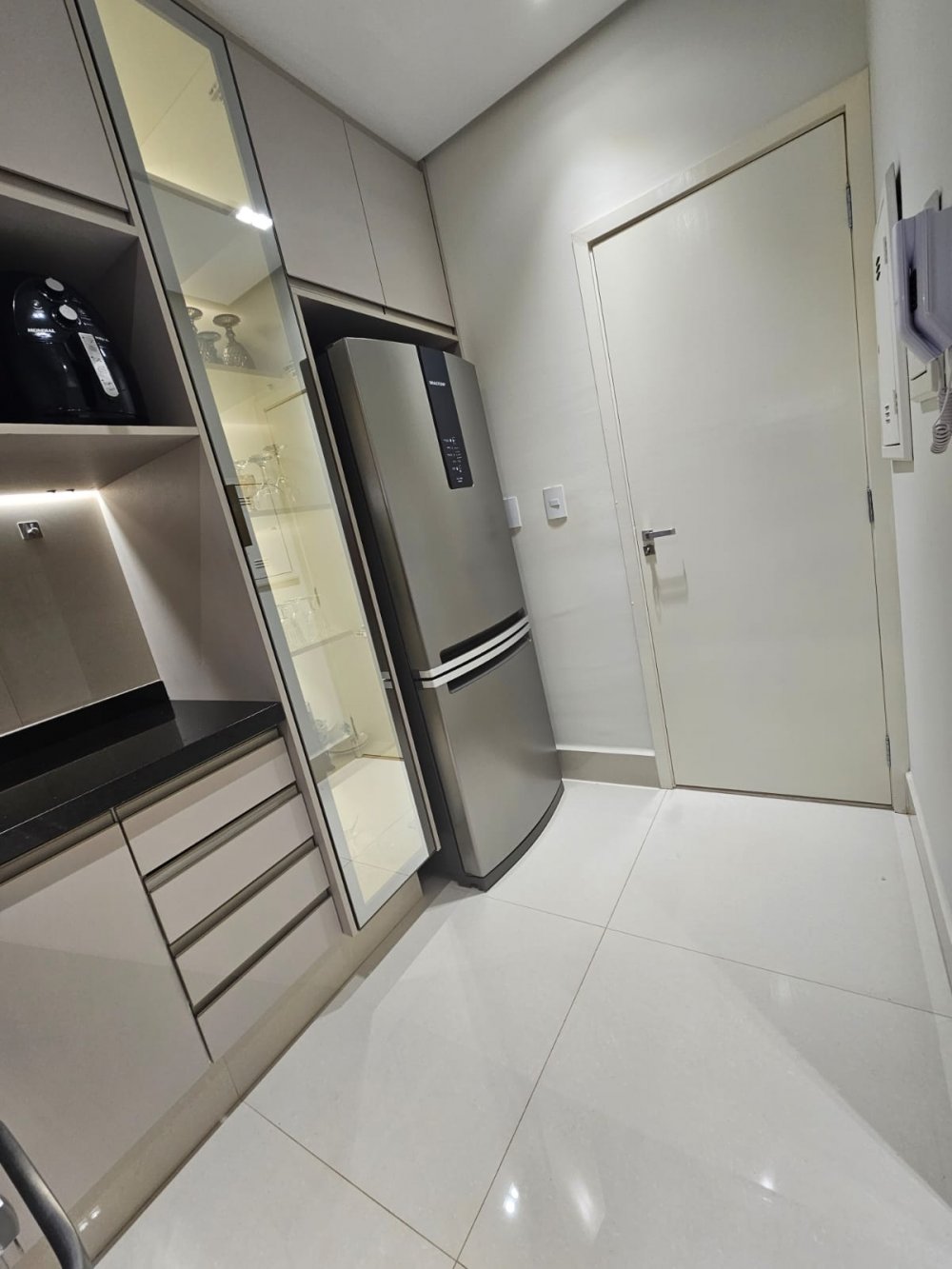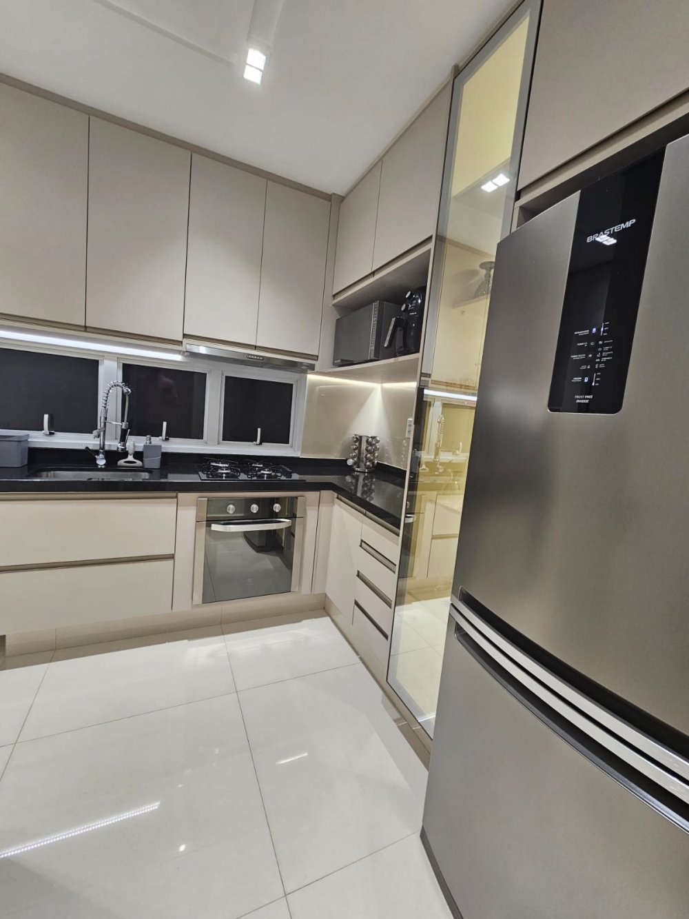 Cozinha toda equipada com armários planejados