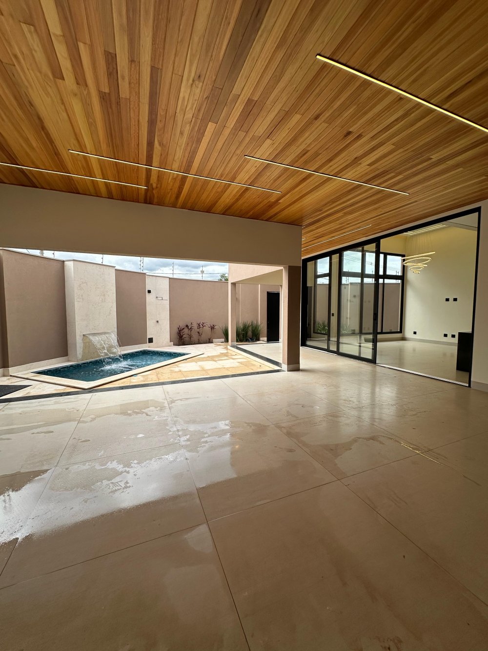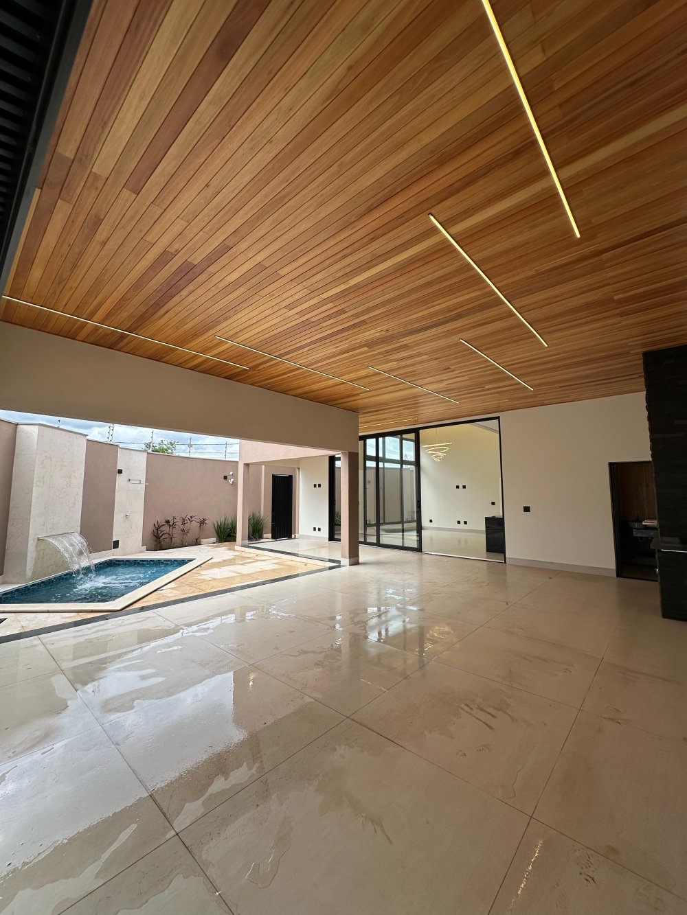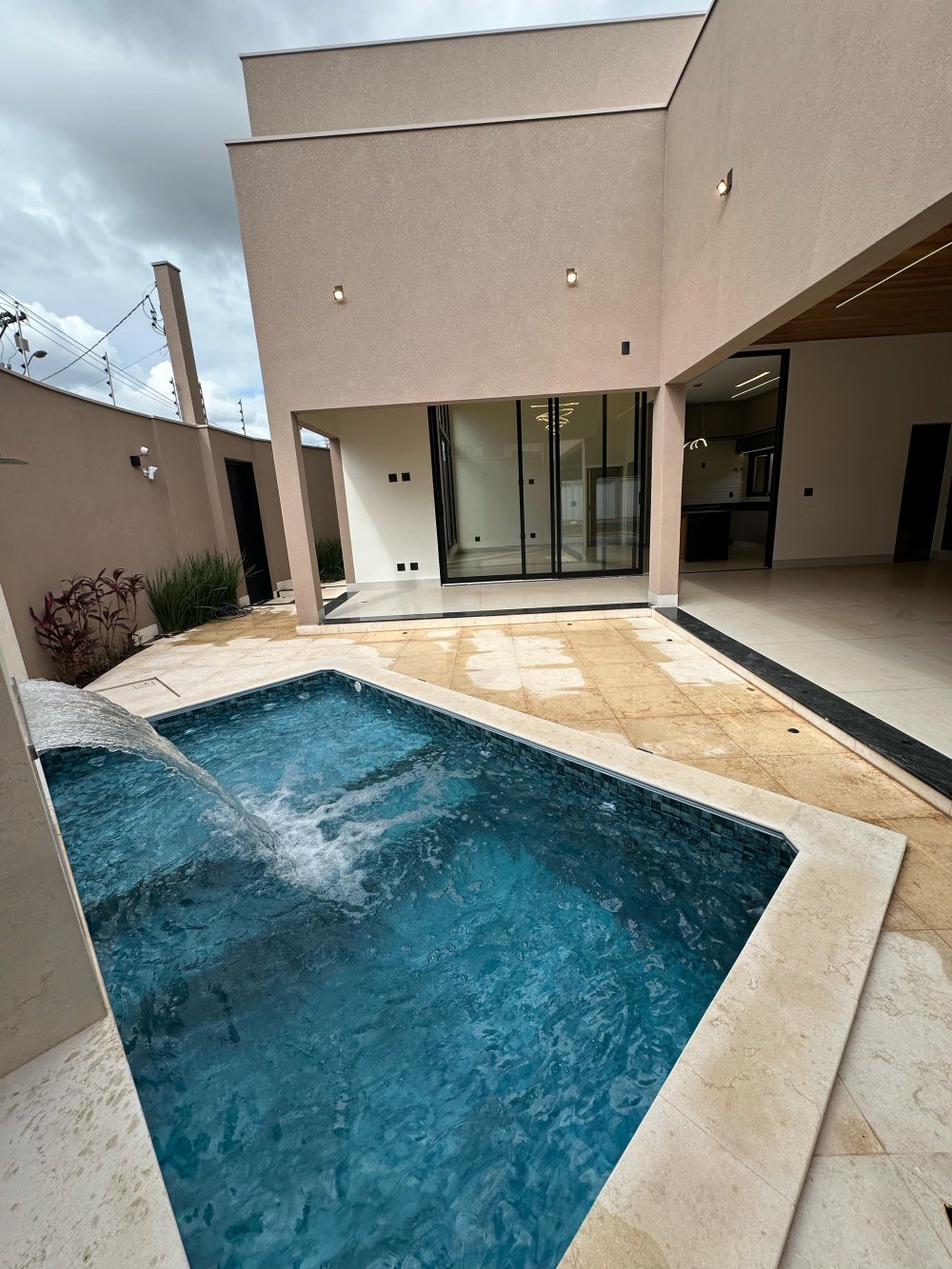 Piscina aquecida, mármore travertino arenado