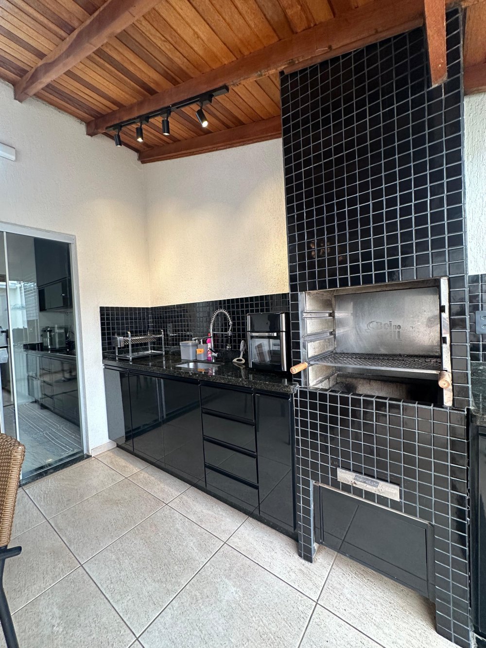 - Área gourmet com armários modulados, pia com torneira gourmet, espaço pra fogão, churrasqueira, painel de tv modulado, teto translucido retrátil;