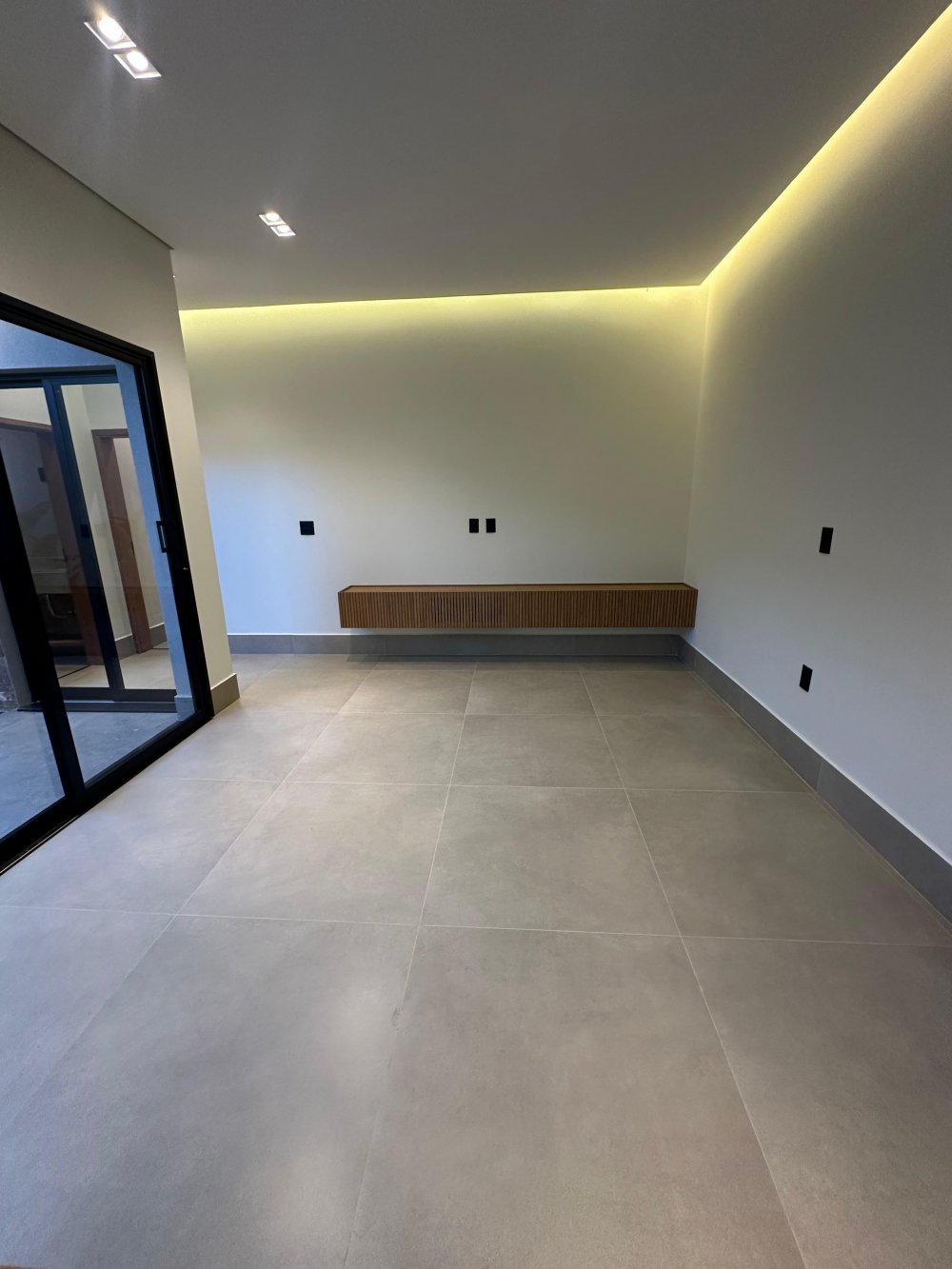 Sala de TV ampla com home ripado (duo home )