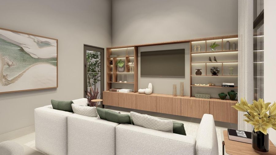 SALA DE TV AMPLA COM PÉ DIREITO DUPLO